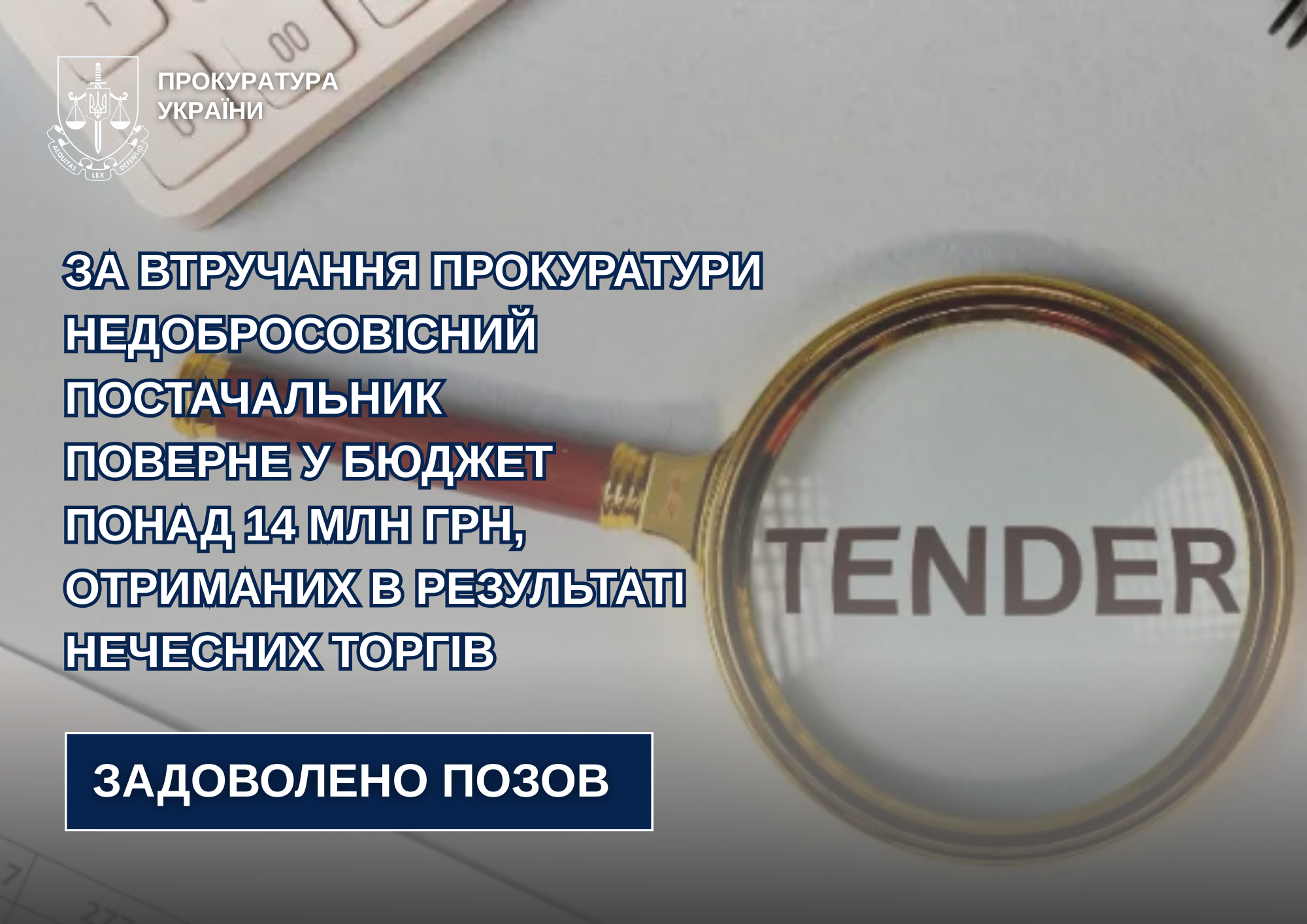 За втручання прокуратури недобросовісний постачальник поверне у бюджет понад 14 мільйонів гривень, отриманих в результаті нечесних торгів