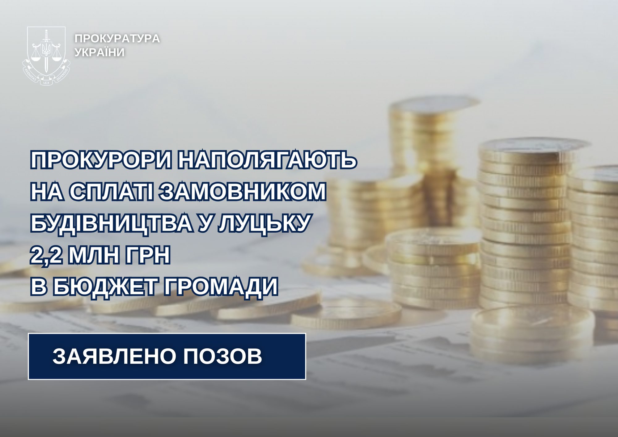Прокурори наполягають на сплаті замовником будівництва у Луцьку 2,2 млн грн в бюджет громади